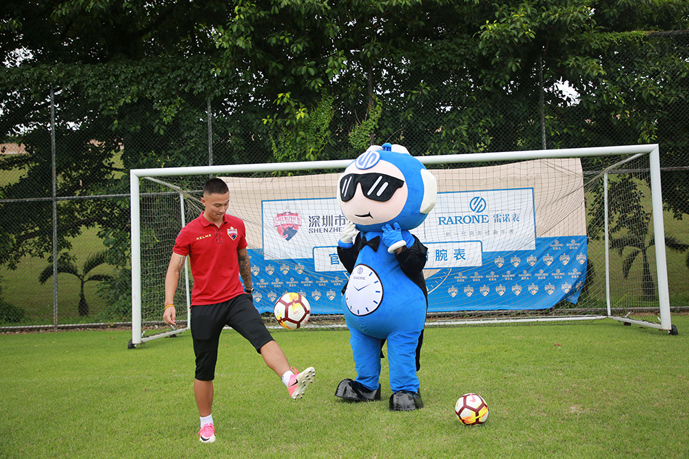 會后,雙方嘉賓移步至足球場觀看深足球員馳騁球場的颯爽風(fēng)姿,一睹球員訓(xùn)練風(fēng)采。雷諾表品牌IP雷小諾也出現(xiàn)在球場,與球員們踢球互動。戲精雷小諾奔跑在球場上,三招兩式,踢球翻身現(xiàn)場就引來熱情圍觀。