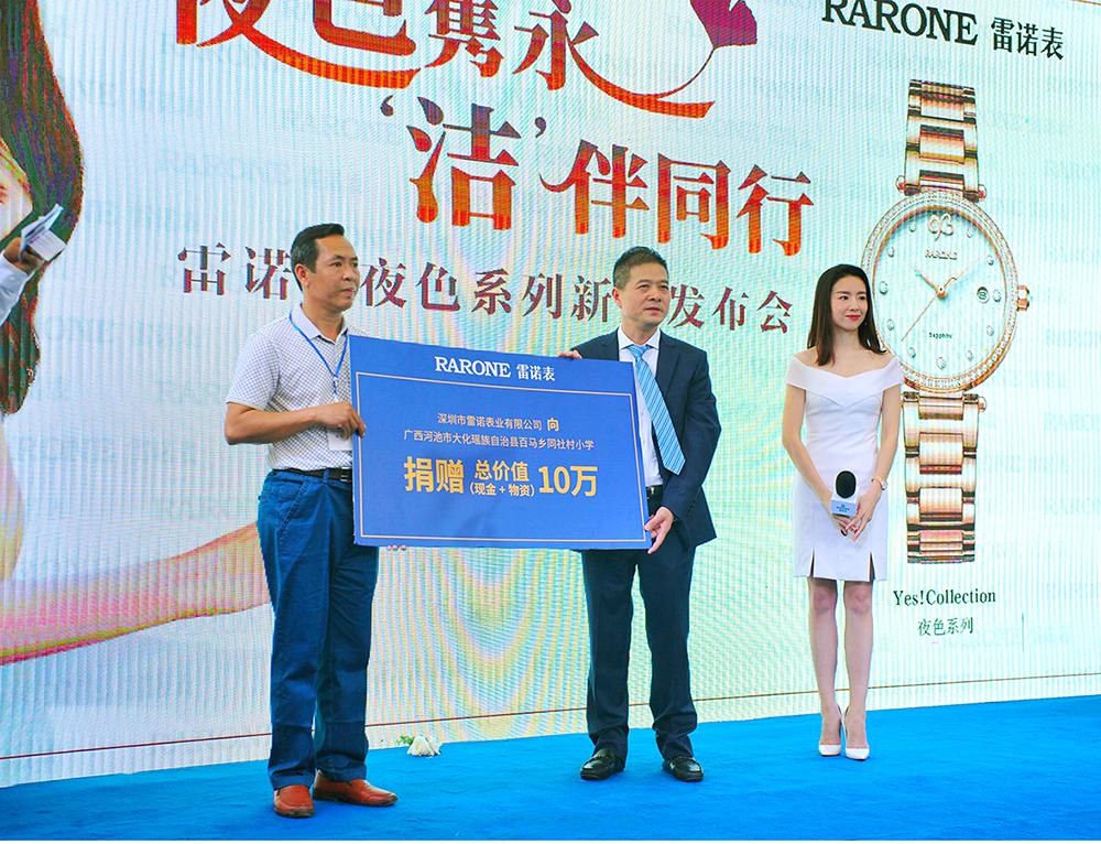 女神表示自己也非常喜歡這款新品傳達(dá)的永恒主題,表款的設(shè)計(jì)也很有意思,會是當(dāng)下都市女性青睞的腕間配飾。值得一提的是,一直熱心公益事業(yè)的雷諾表,在本次發(fā)布會上邀請董潔一同見證品牌方為廣西河池市大化瑤族自治縣百馬鄉(xiāng)同社村小學(xué)開展的愛心助學(xué)捐贈,在當(dāng)?shù)孛襟w以及明星董潔的見證下,雷諾表為貧困小學(xué)捐贈10萬愛心物資及義款,用有溫度的時(shí)間將一顆顆愛心傳遞,溫暖每一個(gè)需要幫助的孩子。
