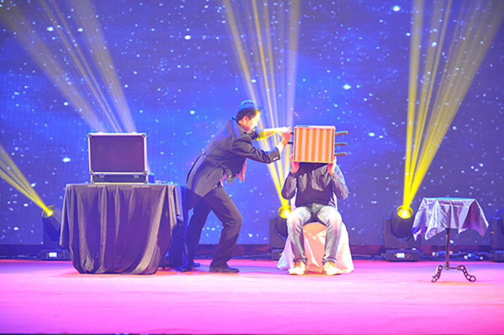 還有驚心動魄的魔術(shù)表演,臺下的吃瓜群眾為表演者捏一把汗?。?/p>
