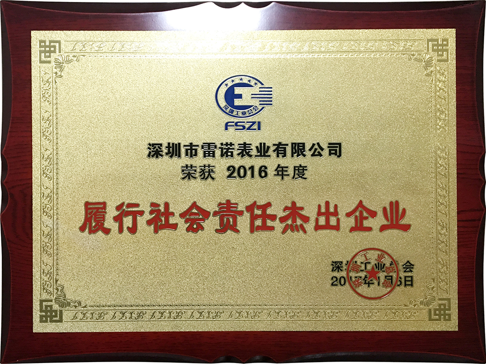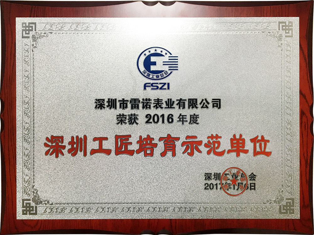 日前,深圳市雷諾表業(yè)有限公司在深圳市工業(yè)總會2016年度總會上榮獲:履行社會責(zé)任杰出企業(yè)、深圳工匠培育示范單位、自主創(chuàng)新標(biāo)桿企業(yè)稱號,雷諾表業(yè)董事長詹西洲先生榮獲企業(yè)家卓越貢獻(xiàn)獎,雷諾表業(yè)兩位技師榮獲深圳百優(yōu)工匠獎。