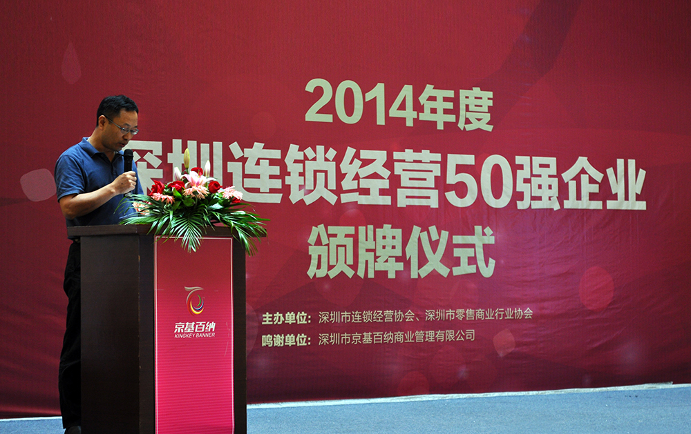 9月16日下午,2014年度“深圳連鎖經(jīng)營50強(qiáng)企業(yè)”頒牌儀式在深圳市南山京基百納舉行。來自市經(jīng)貿(mào)信委、各區(qū)經(jīng)促(服)局等領(lǐng)導(dǎo)以及50強(qiáng)企業(yè)的代表出席了頒牌儀式。雷諾表憑借在零售系統(tǒng)的優(yōu)秀經(jīng)營和管理實力,再次榮獲2014年度“深圳連鎖經(jīng)營50強(qiáng)”榮譽(yù)稱號。