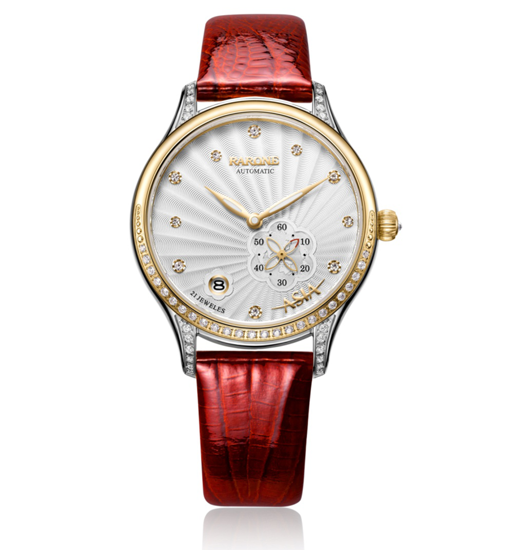 博鰲鼎智系列星月女表充分運用花瓣、星空、月牙等設計元素,結合商務腕表精簡要求,突出當代女性的優(yōu)雅和智慧特征,充滿唯美和時尚的風格氣息。60秒功能小眼,四葉花瓣形秒針,設計獨特,輕巧靈動;10顆水晶刻度猶如星空中點綴的繁星點點,大小不一,錯落有致,營造無限唯美的意境;表圈鑲嵌月牙形水晶石,更加閃耀璀璨。