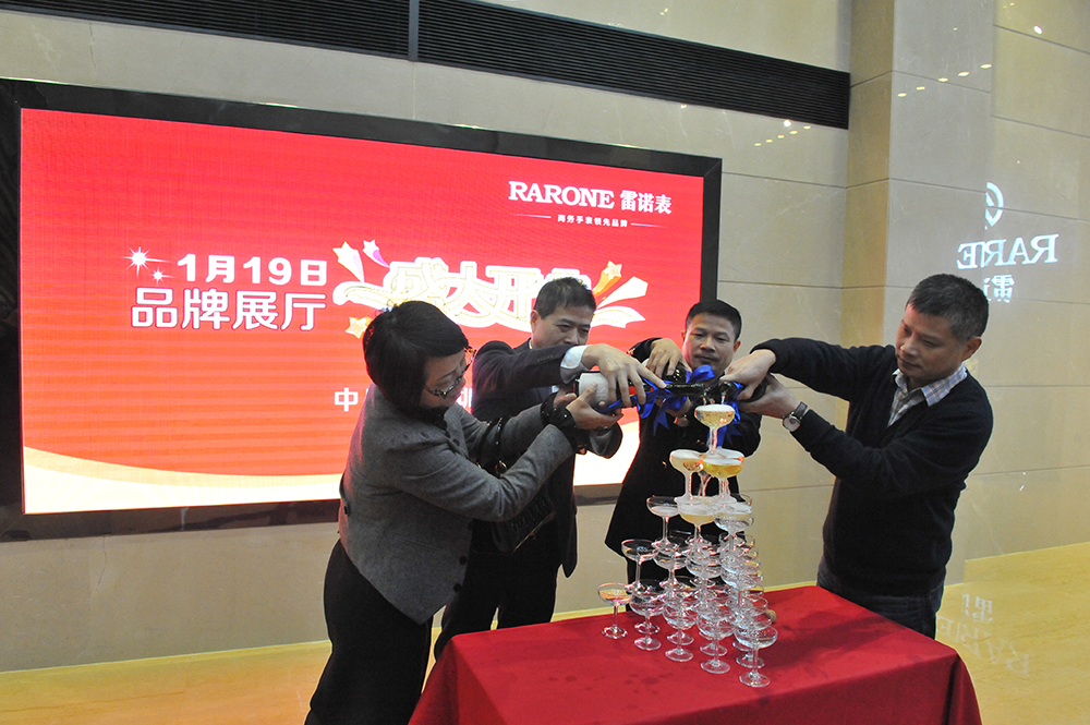 2015年1月19日,隨著喜慶的炮竹聲響,雷諾表總部展廳盛大開業(yè)!董事長(zhǎng)詹西洲先生,總經(jīng)理詹江洲先生,及詹省洲先生出席開業(yè)慶典,并親自推開展廳大門,宣布展廳正式開業(yè)迎賓!雷諾表全體員工以及來自全國各個(gè)省市的區(qū)域經(jīng)理,共同見證了2015年開年盛事。