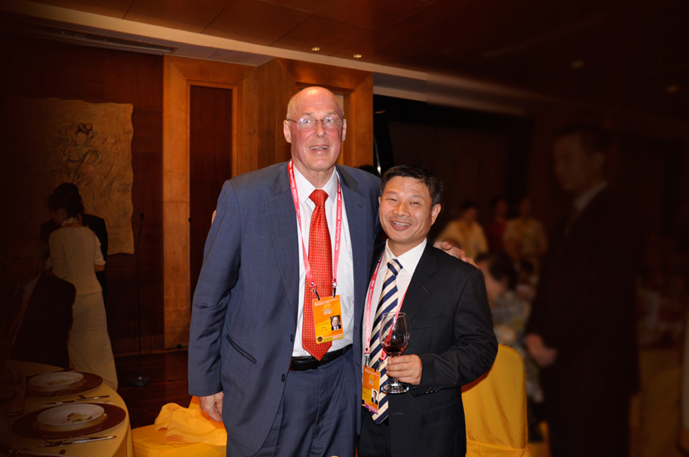 雷諾表業(yè)董事長(zhǎng)詹西洲先生(右一)與美國(guó)前任財(cái)政部長(zhǎng)亨利•保爾森在博鰲晚宴親密合影