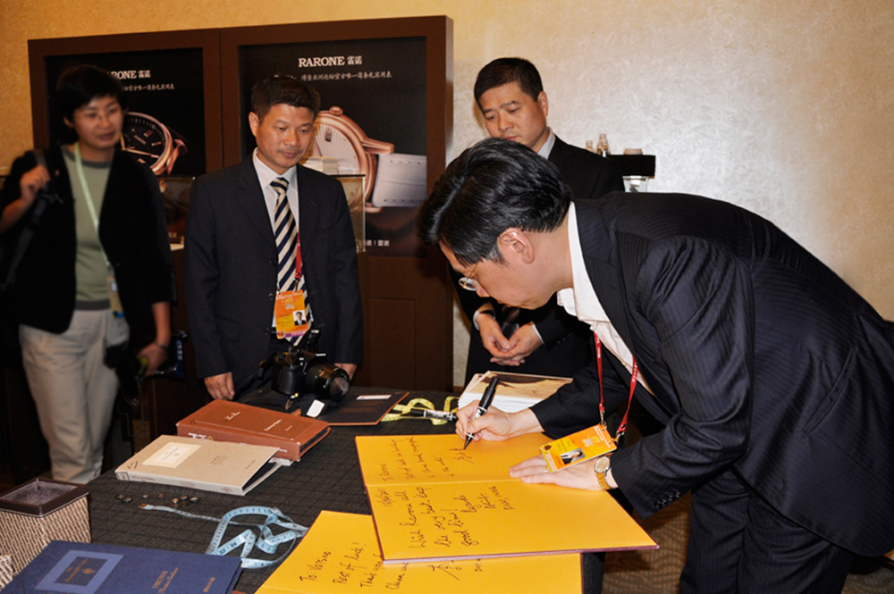 菲律賓前總統(tǒng)拉莫斯參觀雷諾表業(yè)展區(qū)親筆題詞并簽名