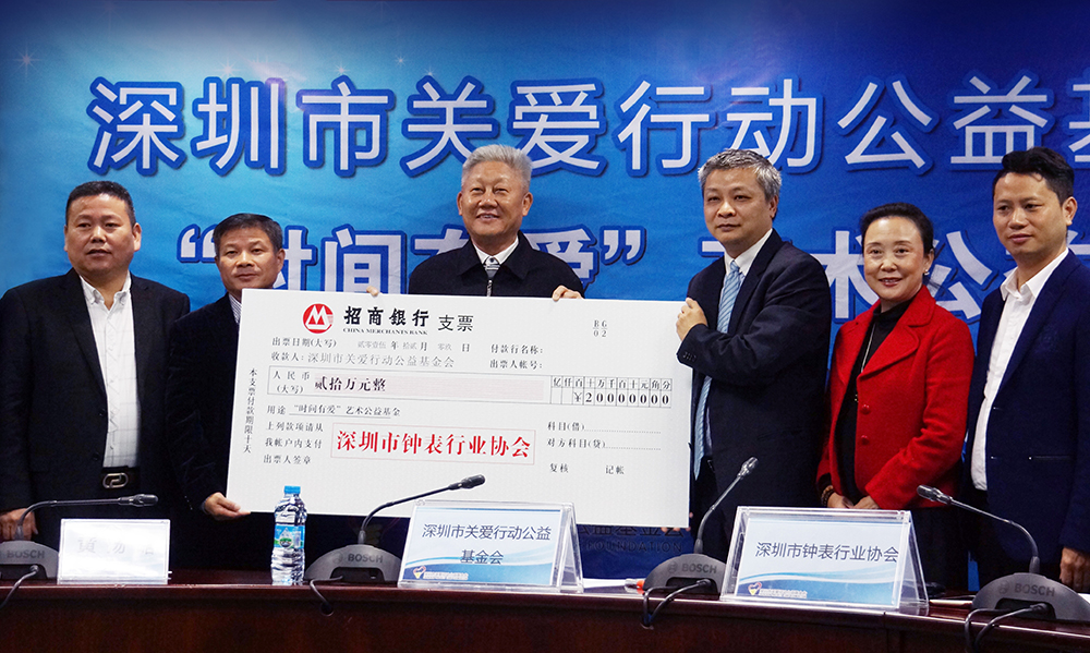12月9 日,由深圳市關(guān)愛行動(dòng)公益基金會(huì)倡導(dǎo)、深圳市鐘表行業(yè)協(xié)會(huì)發(fā)起,凝聚愛心企業(yè)、藝術(shù)家的專項(xiàng)基金——“時(shí)間有愛”藝術(shù)公益基金在深舉行了簽約儀式。深圳市雷諾表業(yè)有限公司董事長詹西洲先生作為基金發(fā)起方代表與深圳市鐘表行業(yè)協(xié)會(huì)會(huì)長朱舜華先生及其他企業(yè)代表共同出席揭牌儀式。